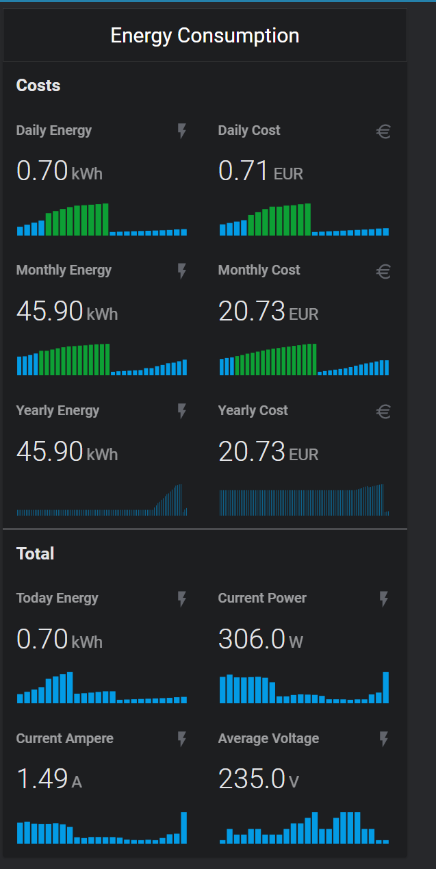 Thanks a lot Andrea @SeLLeRoNe I do like a lot mini-graph-card, I have used Grafana but it is terrible slow, it just the stack bar the only function I miss from power and energy monitoring. For the rest I´m using mini-graph-card