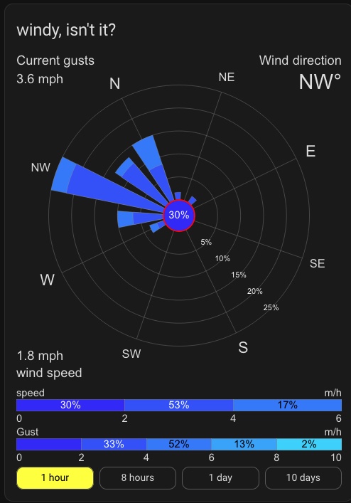 I opened this post to collect example configurations with screen captures for the Lovelace Windrose Card. Sometimes people ask me example configurations. I added some examples to the docs, but now I can also point them to this topic.