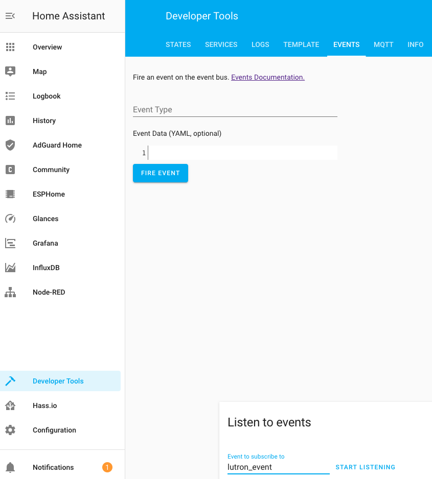 OK, I just updated to the latest version. Home Assistant 0.102.2 and retested listening for events in the Developer Tools>Events. Made a small amount of progress.