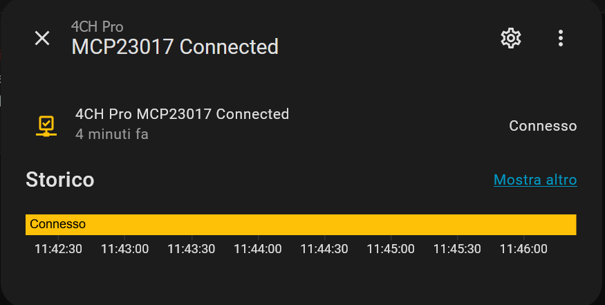 The issue is that even if the MCP23017 is disconnected or malfunctioning, all its entities (the switches) still appear in Home Assistant as fully available: I can turn them on and off without any warning or error.
