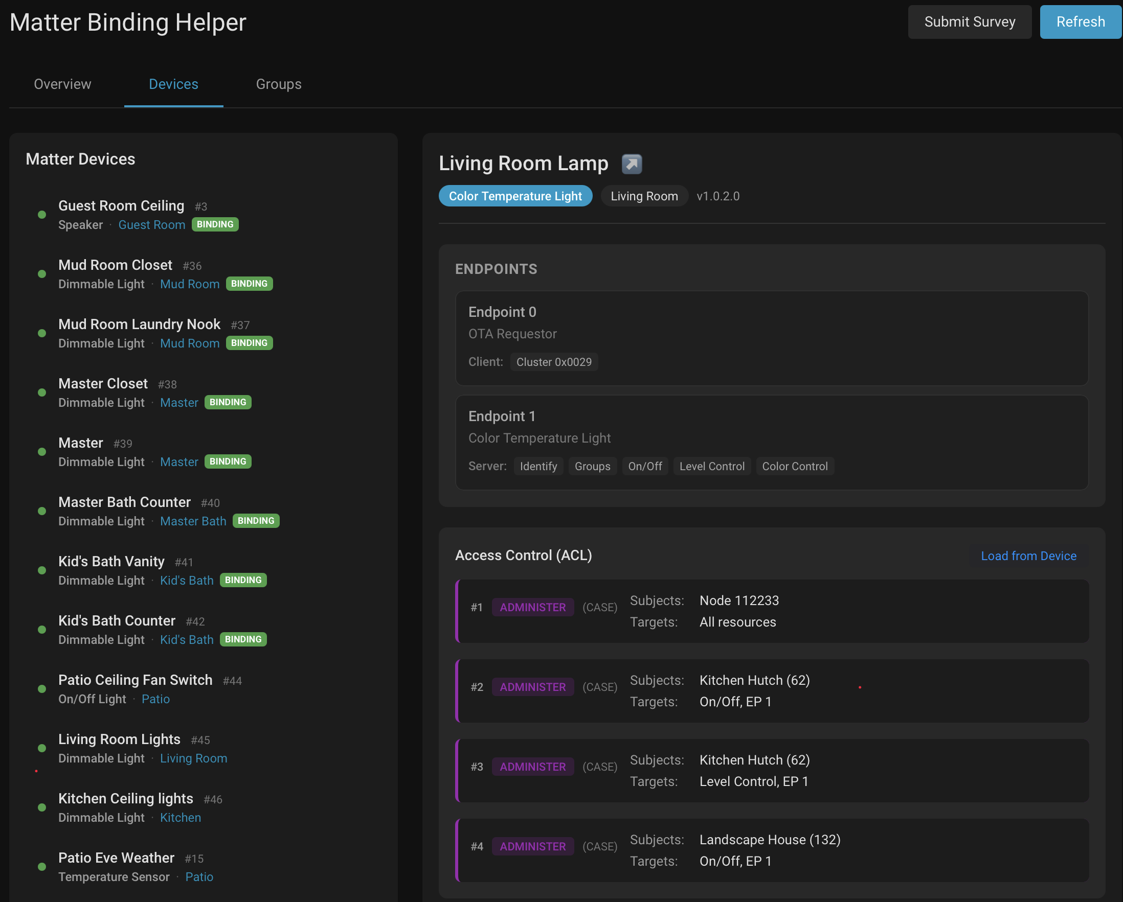 You can check for orphaned ACL with Matter Binding helper/Devices