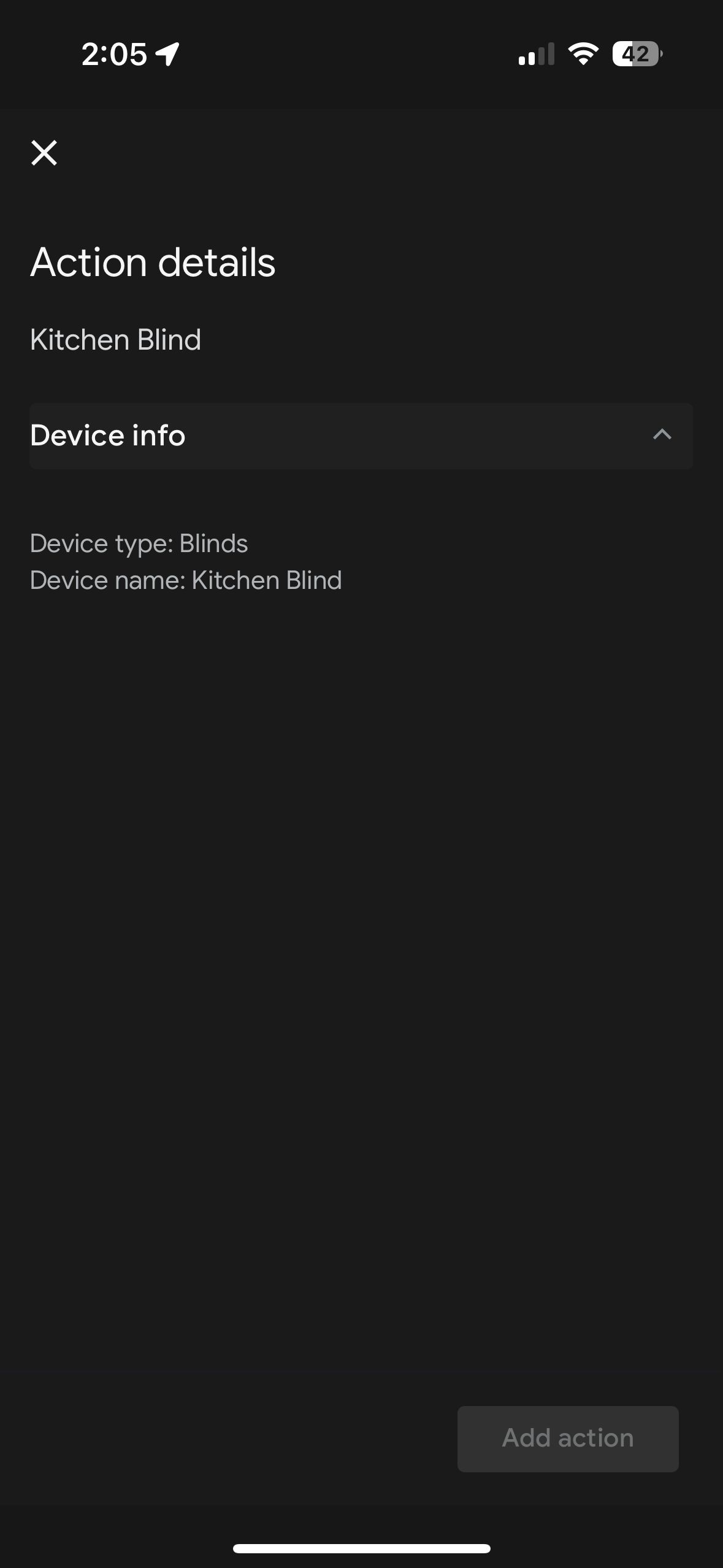 I don’t have a option to control my zemismart zigbee blinds via automations (nothing comes up as an action) but a workaround was creating an automation in HA and exposing it to the add on, then controlling the automation via google home automations.