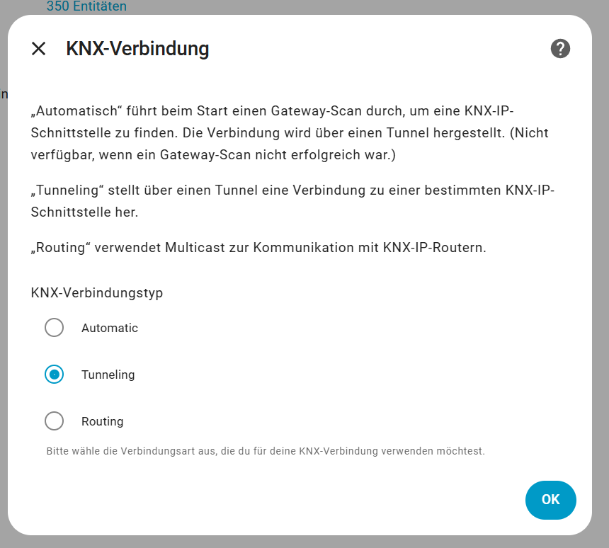KNX Interface Verbindungstyp wurde nicht verfügbar