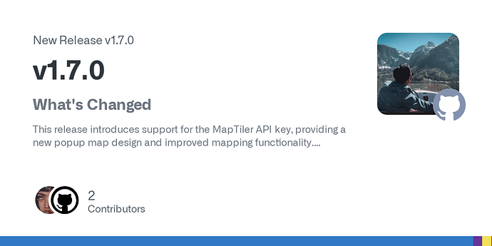 - New Popup Map Design: Added MapTiler API key support to enhance the mapping functionality. #106