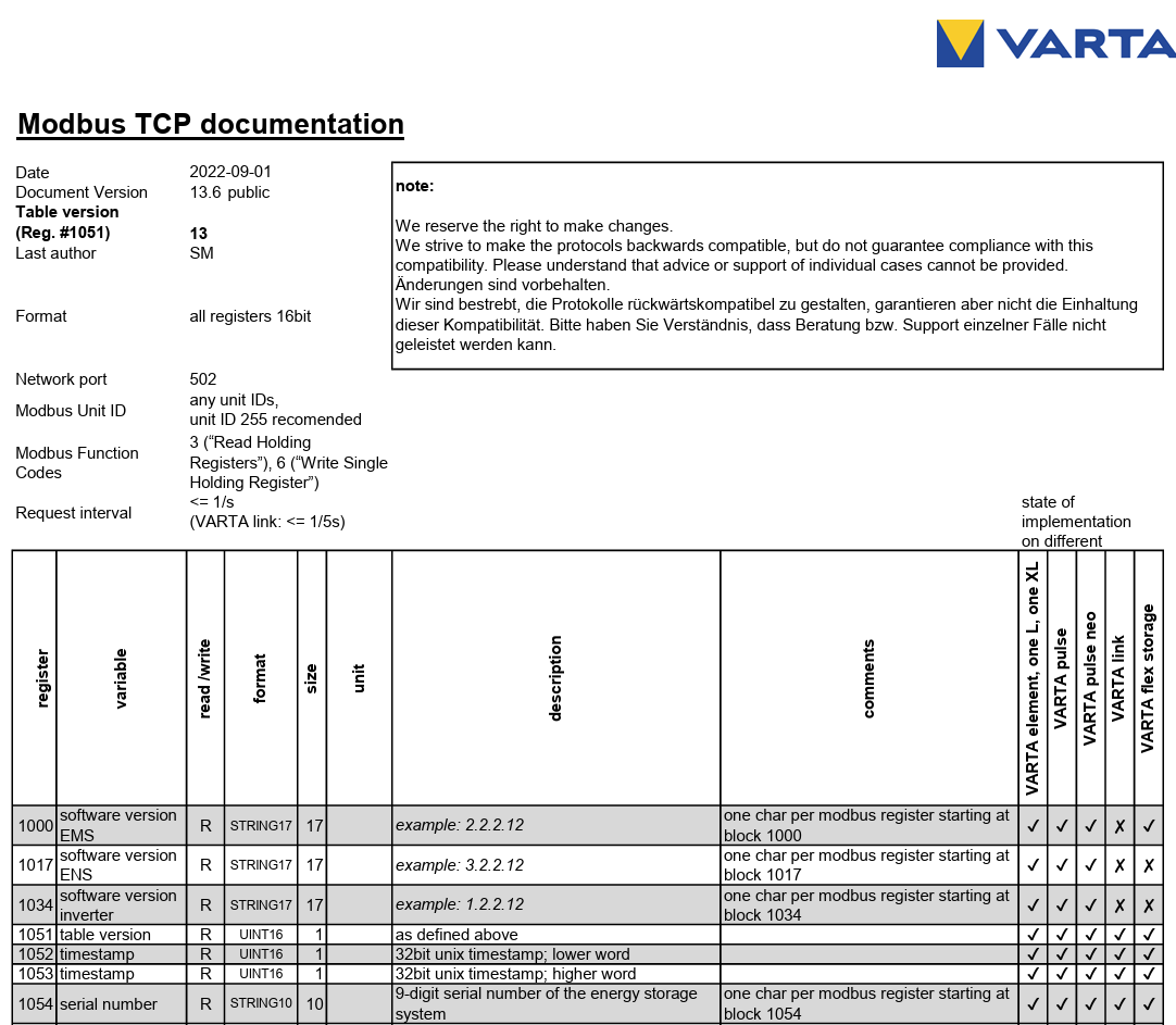 i am struggling at the very beginning to establish a modbus communication with the Varta.Wall battery storage.