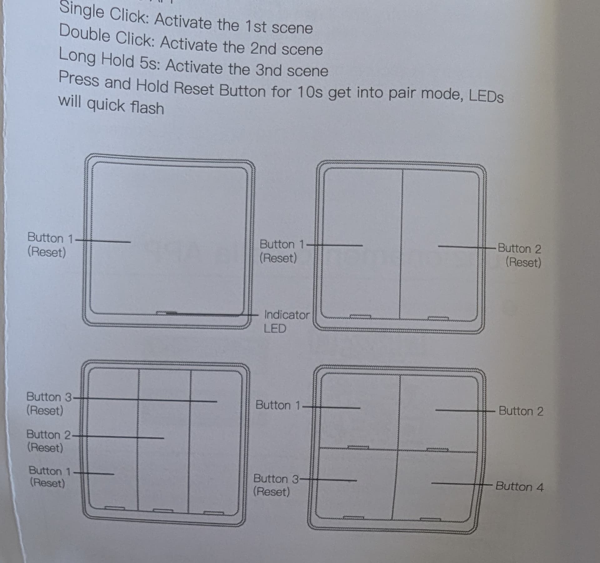 Is it correct that I should push 1 button for ten seconds and then they all start blinking together for like a minute, which indicates they should be pairable?
