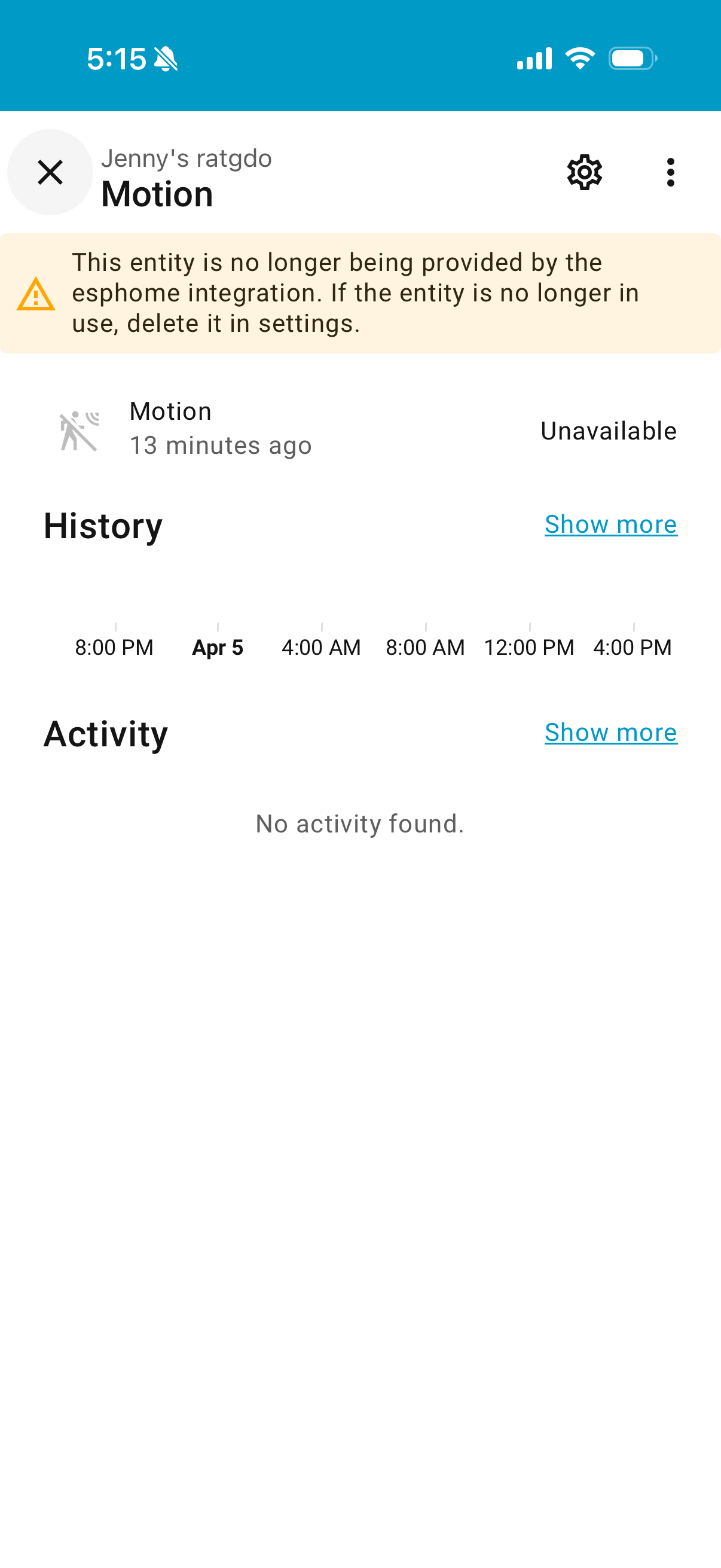 Code must be properly aligned and using the correct syntax. Also, when you’re in a specific forum like this one, Esphome. Its not very helpful to us or useful for you to put in here because, that is syntax specific to Homeassistant and not Esphome. When your Esphome entity isnt even being integrated into HA from your Esp device then if you think about it then its easier to recognize the Esphome part is the problem and if it’s not even being recognized in HA then messing around with your HA automation code for that sensor isn’t very helpful because HA shows your sensor as “Unavailable” which means the automation doesn’t comprehend the name of a non working entity so we need to focus elsewhere with our troubleshooting, if that makes sense?? Its kind of like if i were to get irritated because I cant find my favorite Backstreet Boys mix tape but, my wife is still using my car to do shopping so there’s not even a reason to stress over the mix tape because I wouldn’t be able to listen to it anyway…