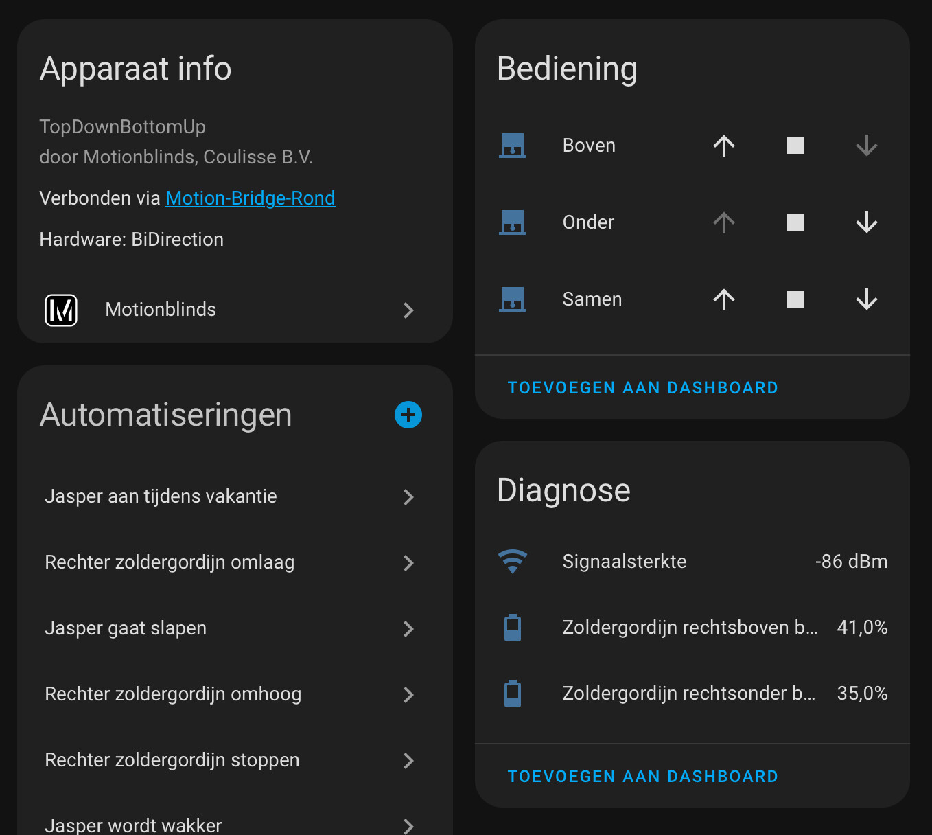I also need to look into merging both motors into one device or scene that makes the blind work like one TDBU device, because atm you need to keep in mind that both motors can go fully up and down and that can create a tangled mess.
