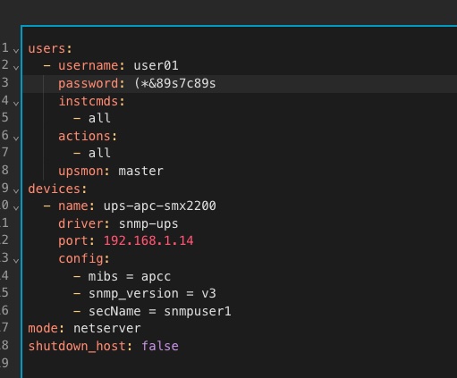 None of this was intuitive in my opinion… documentation varied so much across my searches. Most were using a shell account and opening conf files, which you can’t do in HAOS now. Anyways… now I have to get the syntax working so I can use a password on the SNMP v3 UPS side to make it more secure.