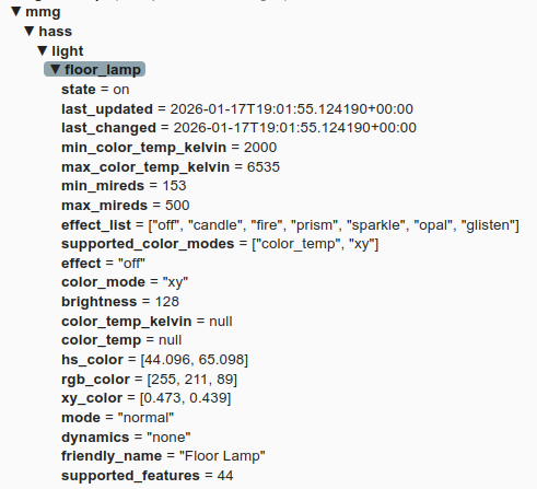 Reading MQTT Light - Home Assistant Iâve configured a MQTT Light like this: