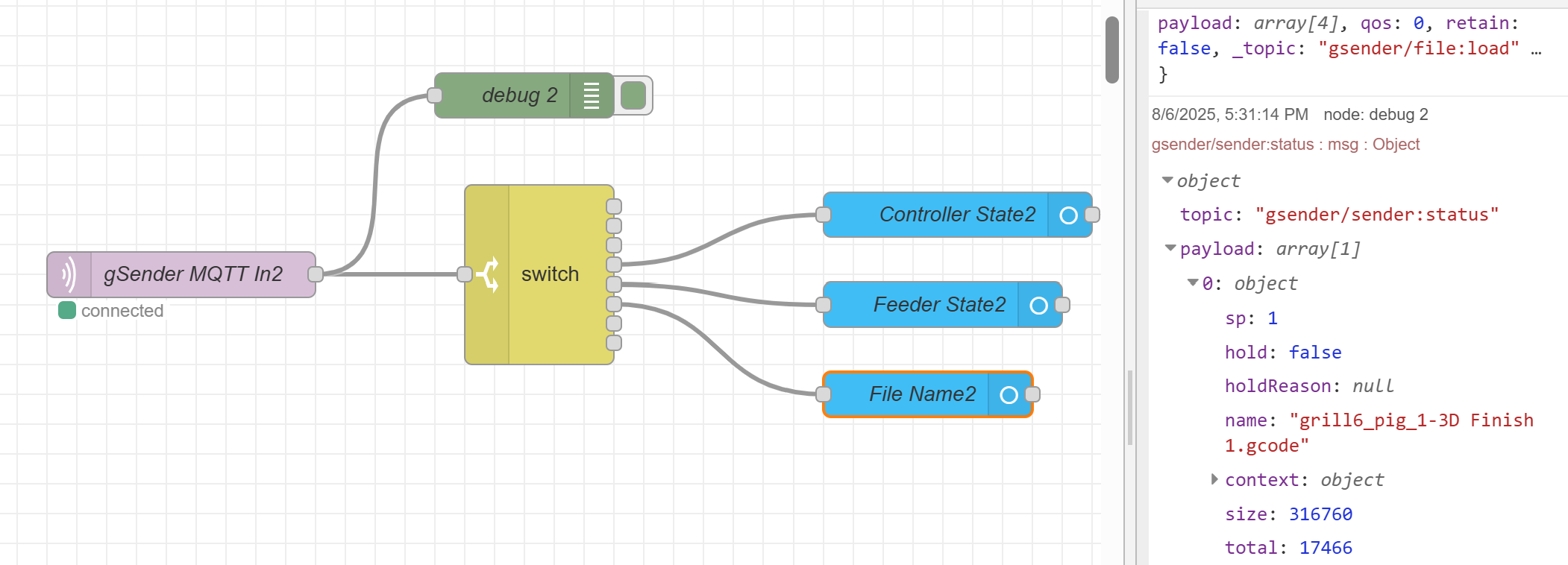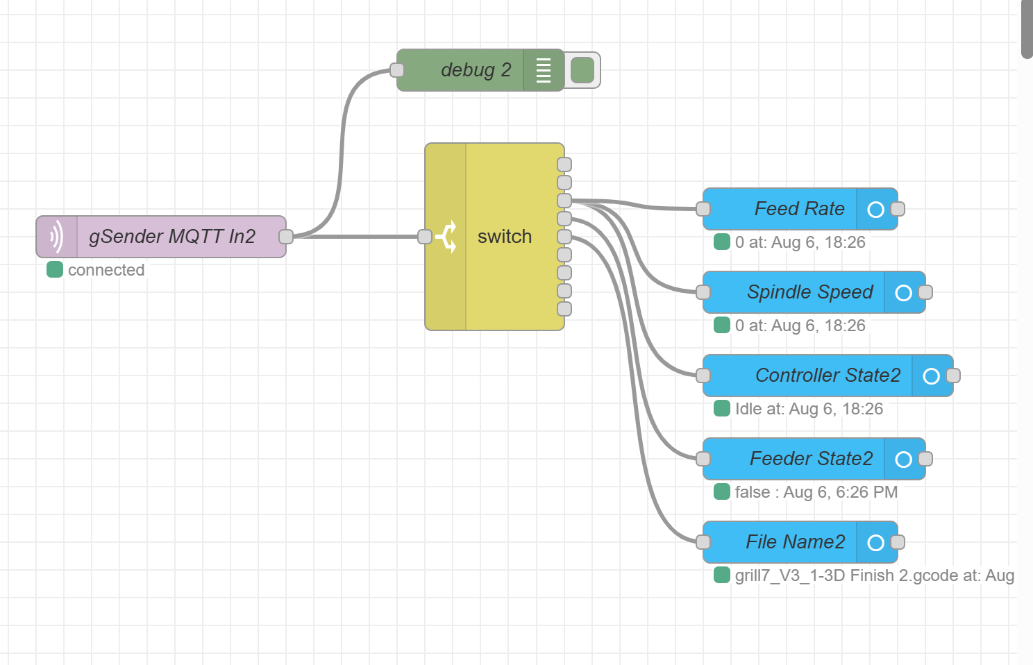 I am trying to setup MQTT signals from gSender (my CNC) into NodeRed with aspirations of achieving something along the lines of what @WolfwithSword created for BambuLabs.