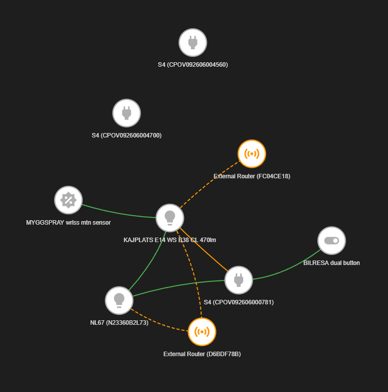 The two separate S4 devices are the two plugs in the garage, both of which are online & working. Only one of which was installed whilst the new OBR was in place in the garage (dunno which one though).