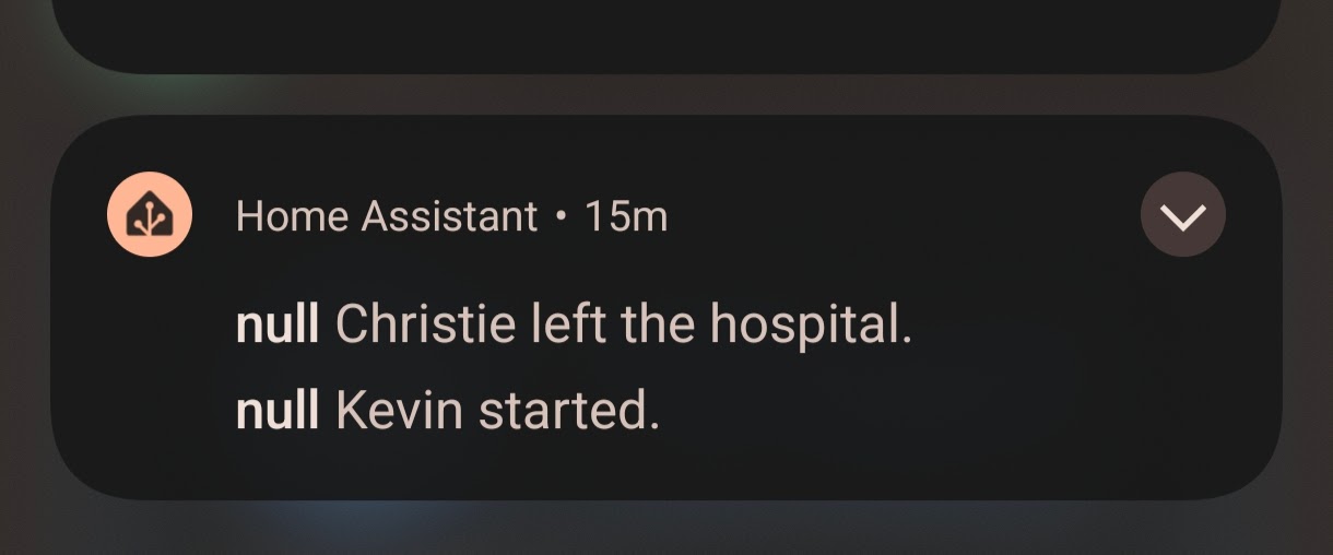 When I have multiple notifications stacked up, things get weird. Each notification has ‘null’ where a title would be, followed by the message body.