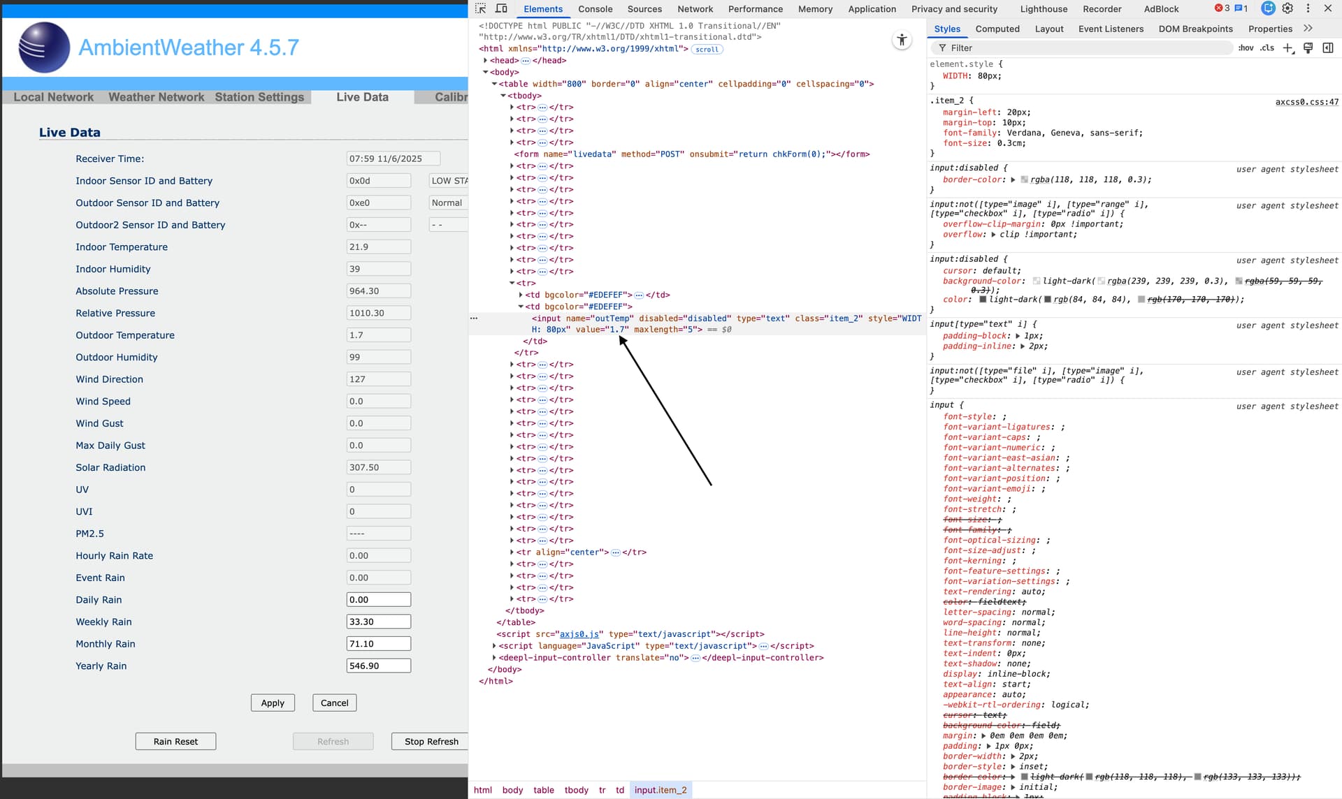 Attached is the image of the the weatherstations website and the value i want to scrape.