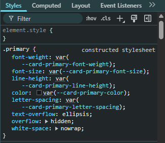 Hi I am trying to style this simple card but having issues. Can somebody help me, please? All I want to do is change the text to small caps. Thank you