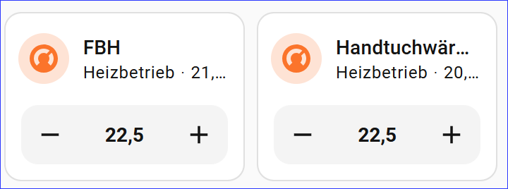 The challenge now is to set the temperature of the radiator to the desired temperature to achieve this. If too high the radiator will heat up the room while the underfloor system closed its valve, if too low it will stay off. Sadly Mushroom climate cards have a precision of 0.5 °C, which is too much too really maintain a stable control.
