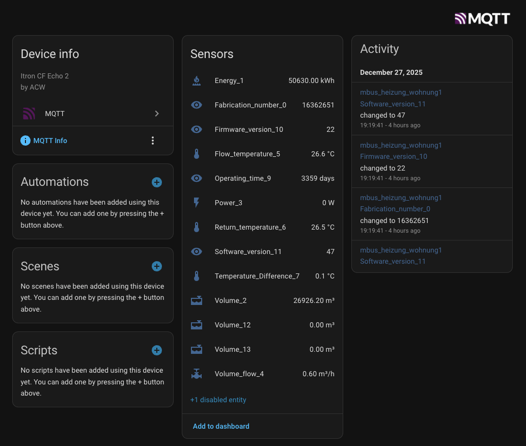 btw. I considered writing this as an integration or App Daemon app using the HA API, but with libmbus being unmaintained for years (still working very well!) I don’t think it’s a good idea to compile and install that locally on a linux machine where HA runs.