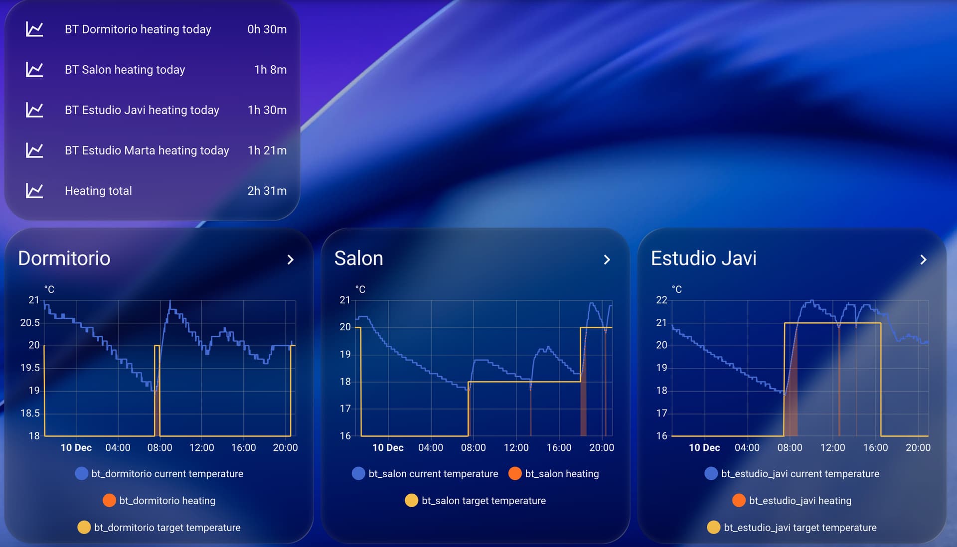 Finally, i have also implemented a holiday mode, which i will explain in the next section. Basically it sets the target temperature for all the valves to 10C.