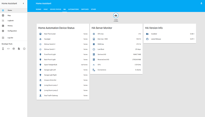 I’m currently running Home Assistant version 0.44.1. My preferred installation method is Virtualenv on top of your favorite Linux distro. I am currently running Ubuntu Server version 16.04 LTS.
