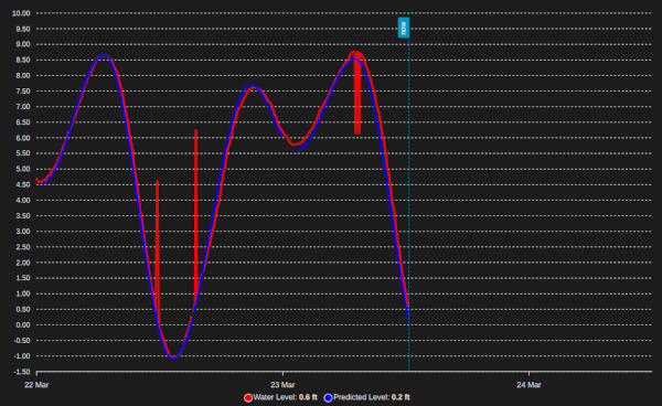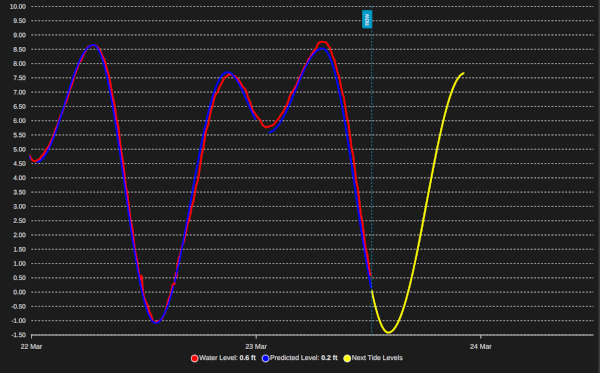 I spent a little time to try and bring in the measured tides, but where I am they don’t vary that much from predicted, and I care more about the future anyway.
