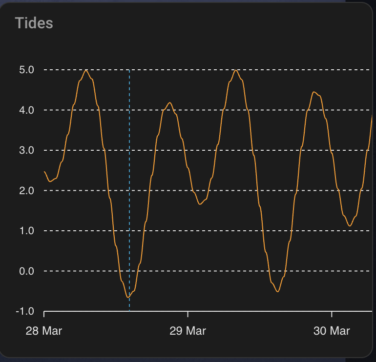 This is less interesting when the next tide is real soon, but the HA_Noaa_Tides tide_predictions sensor includes the tide following the next tide, so I could extend the plot out even further: