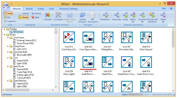 However, I believe that statement requires qualification; it is a limitation of UPB’s Message Mode. The limitation doesn’t appear in Premise’s UPB integration (which uses Pulse Mode). When I deactivate a scene, the new status of all scene members, in Premise, is updated. So at first glance, it appears there’s some kind of enhanced scene reporting mechanism available in Pulse Mode that doesn’t exist in Message Mode. However, the programming challenge of using Pulse Mode is a bit daunting to me.
