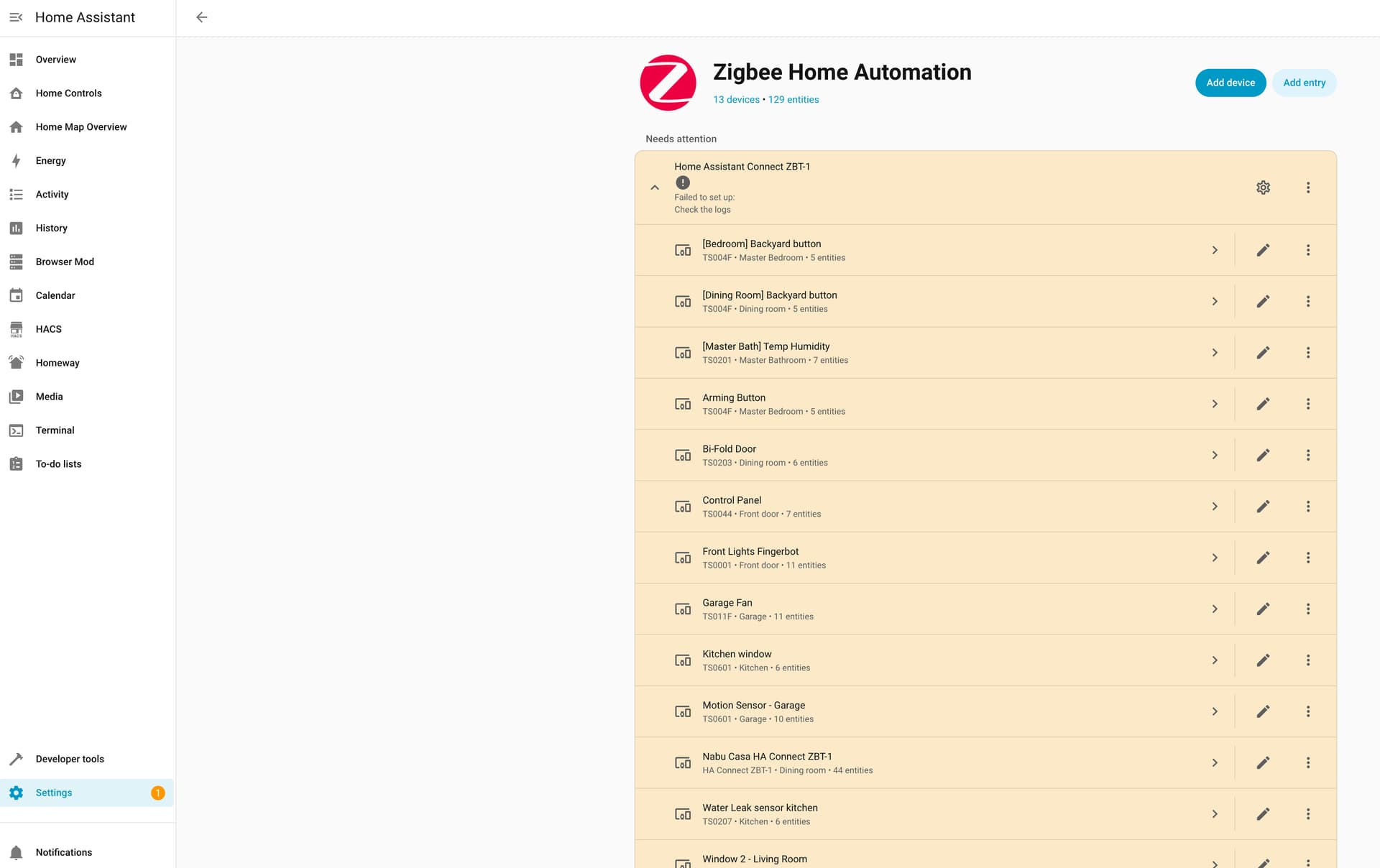 Shows a new error with Zigbee - that the port is being used by another application, not sure what that means?