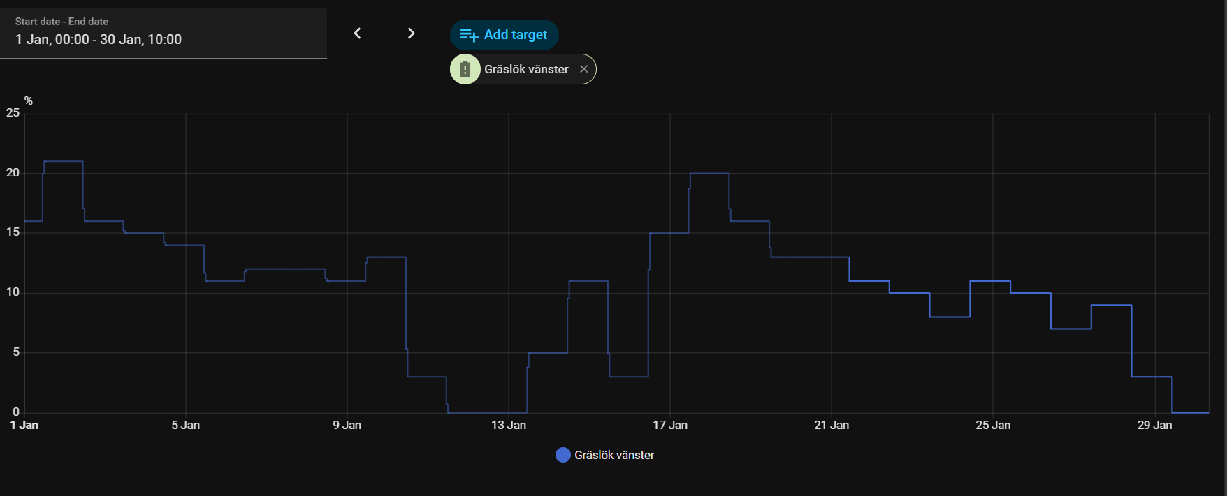 So, on to the values these things were reporting. Keep in mind that I’m not looking for a particular value for a particular moistness of soil. What I want is for the difference between the two sensors of a given brand to be much less than the change they report for wet and dry soil. In other words, if one reports “100%” for wet soil and “90%” for dry, while the other reports “40%” for wet and “20%” for dry, that’s not good, since my plan is to have a universal threshold automation that alerts me whenever any sensor dips below a certain percentage. What’d I’d prefer to see is one reporting, say, “70%” for wet and “30%” for dry while the other reports “60%” for wet and “25%” for dry, since the overall change in their reporting between wet and dry soil is greater than the difference between the two devices.