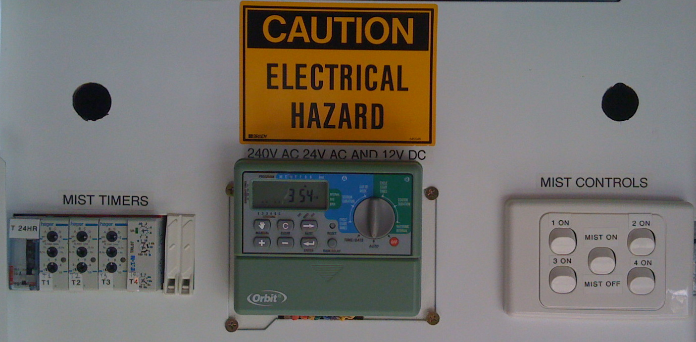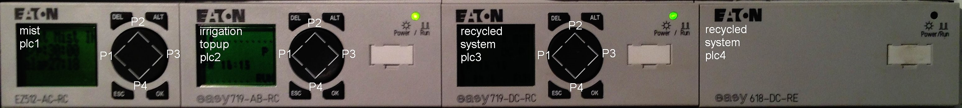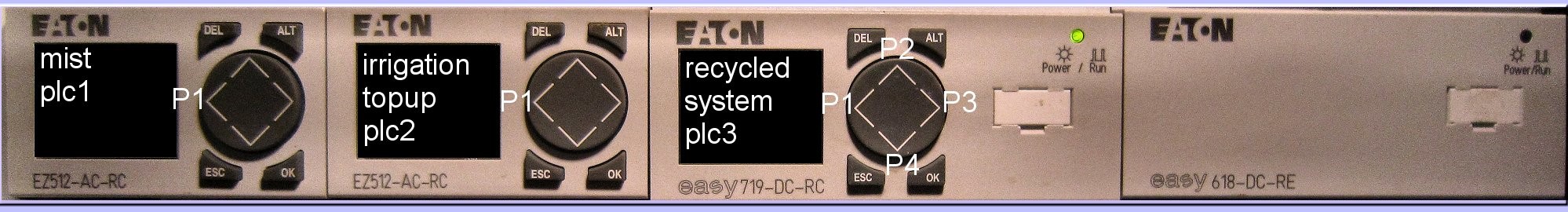 Later I began utilizing a couple of Eaton Mini PLC’s to build my own custom irrigation and misting controller with more precise misting control and early recycled water control.