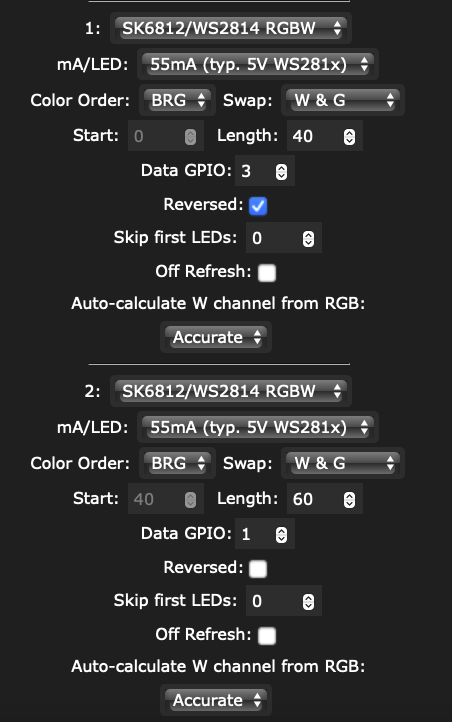Took a bit to figure out the settings in WLED for the lights to behave properly.