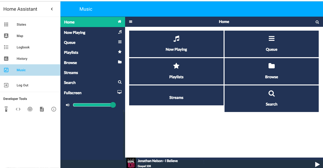 Now that you have a webclient for Mopidy we need to add it to Iframe in HASS. Now your iframe will be on the left side of HASS, You can now play from this section. Once you play music from this section you will need to tell it which speakers to go to by activating one of your switches.