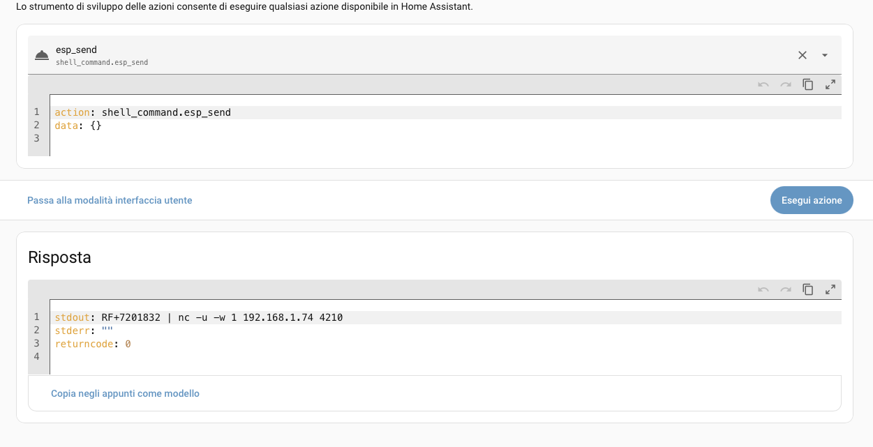 This configuration creates a “shell_command.esp_send” when used, the command is once again received by the esp device and executed perfectly.