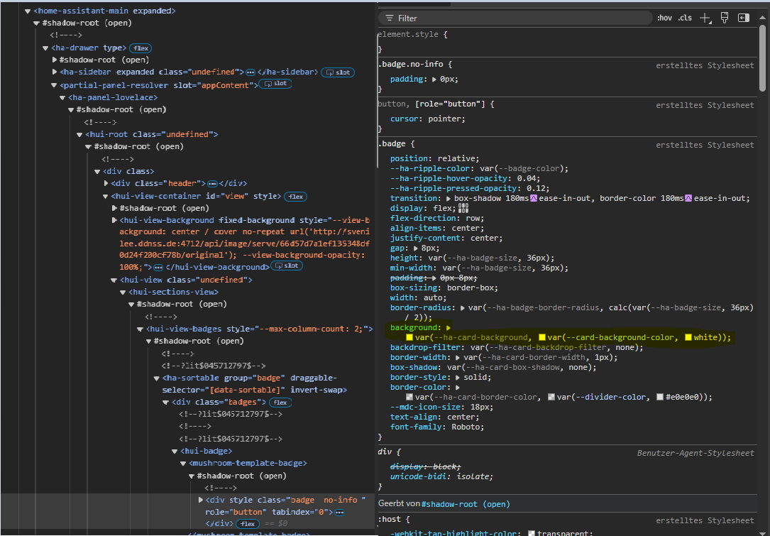 I use it for a battery indicator with a pulse when charging/uncharging. Any idea which part of the badge creates this wrapping rounded black rectangle on the Sol Battery badge compared to Solar Power? I suspect it is card-mod, but I haven’t figured out yet which and how to make it transparent…