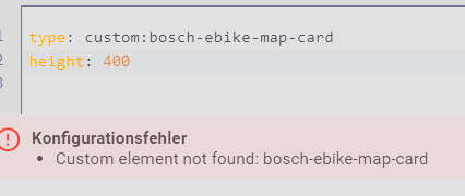 The correct path for the file “bosch-ebike-map-card.js” is “homeassistant/custom_components/bosch_ebike/www/”. Just copy the file into this folder and restart Home Assistant (full restart required).
