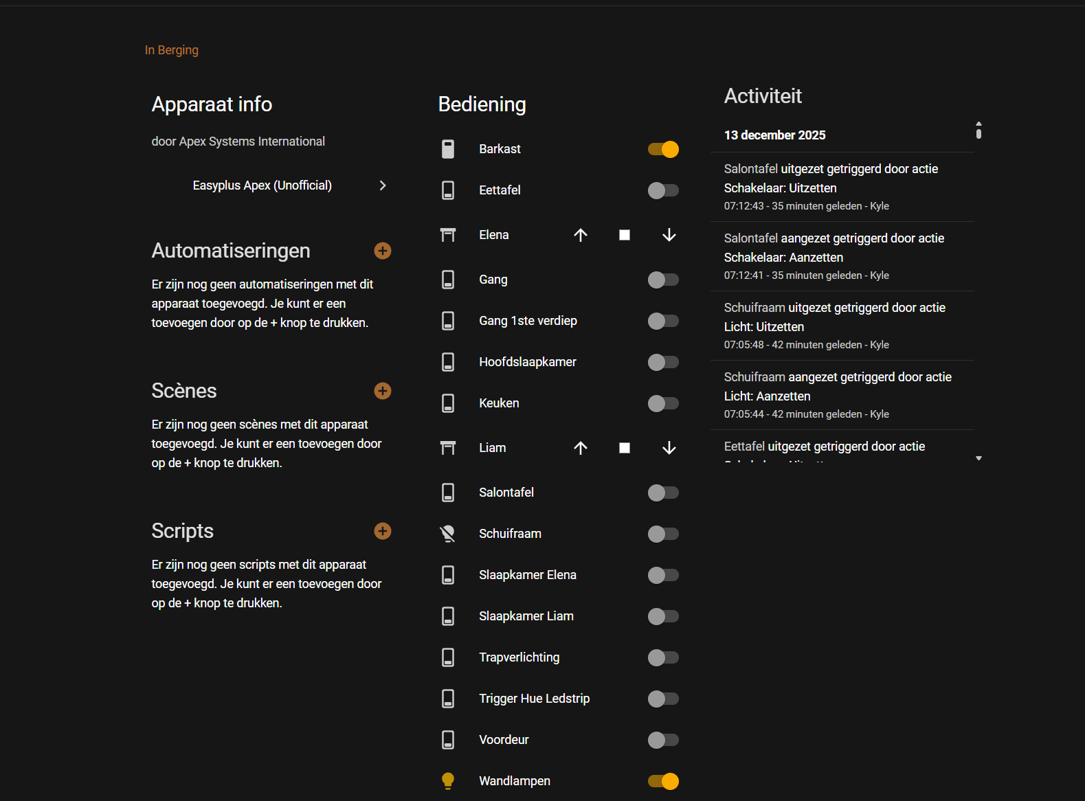 Smart XML Import: You can simply paste your Apex config.xmlcontent during setup. The integration will automatically:- Name all your devices correctly (e.g., “Kitchen”, “Living Room”).