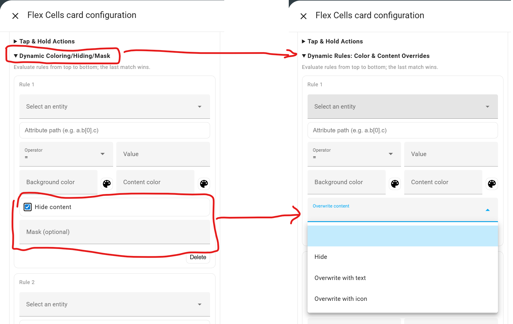 I’m working on it. In about a week, you’ll be able to use dynamic colors for content and background, and you’ll also be able to hide content when a condition is met. Cardmod won’t be needed.