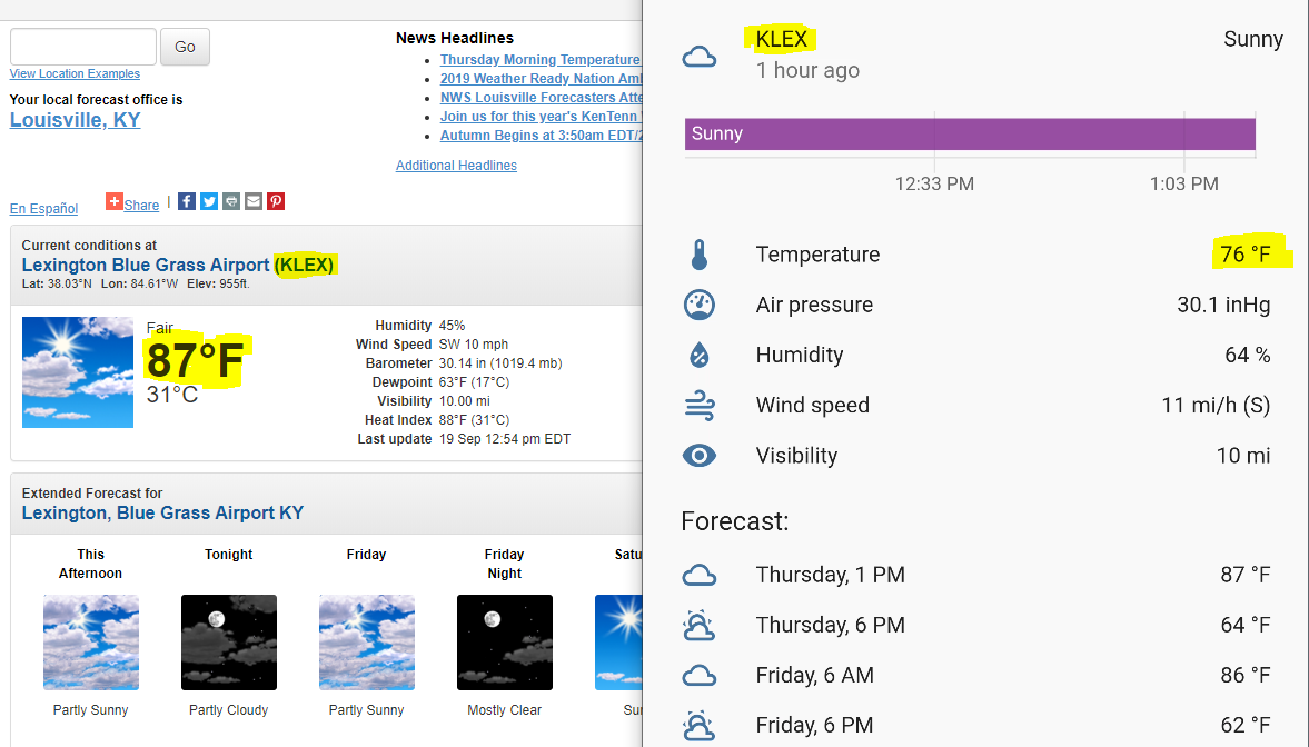 Right now the library grabs the latest observation. Iām planning on having it only use observations from x prior minutes instead, so it would be blank in that case. This would make it clear what is going on at least.