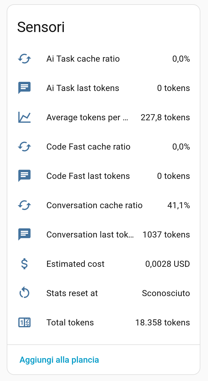 - a. an assistant for Assist conversation with peculiar features, such as conversation memory on the xAI server (meaning I only send the last message, not the whole conversation, as is the case with the Home Assistant standard), conversation continuity between the same user’s devices (switching from PC, tablet, to smartphone for the same user), and executing multiple actions in the same request;