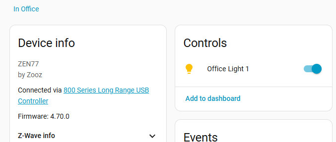 I have a new green box home assistant. and a zwa-2 zwave antenna. I never used home assistant. I added a zooz zen72 light dimmer switch. From the z-wave JS UI control panel, it looks good, all green checks and says complete.