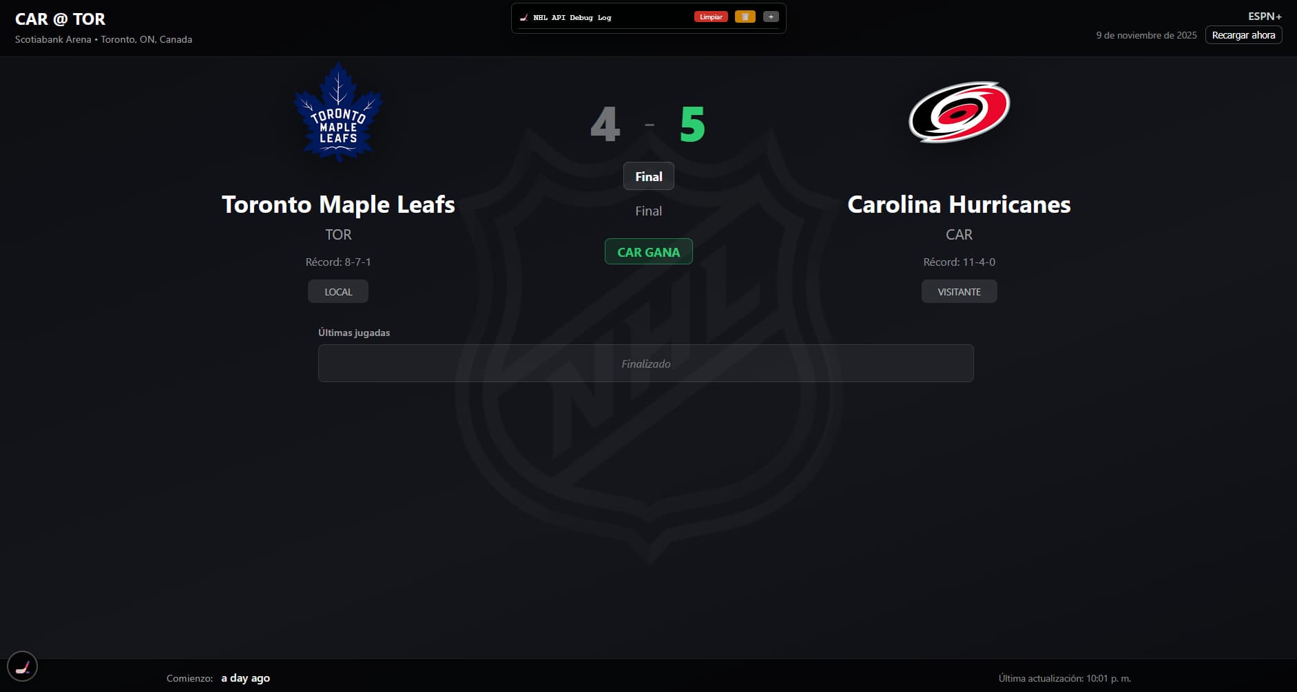 input_selectspecified in the code above to extract the names of the favorite teams, since that is where the live events are obtained. The NHL API is used to get everything else. - Download the HTML file from GitHub (choose your language in link below)