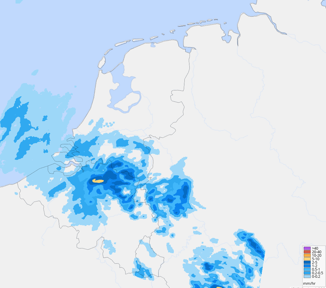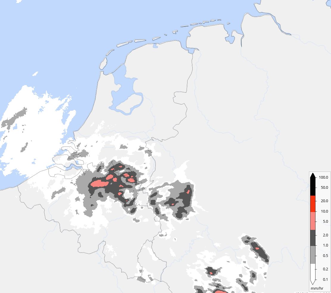 As you can see, the color scale will lead to different contrast of different precipitation intensities. If you look at the legend, you’ll see the intervals for the different colors.
