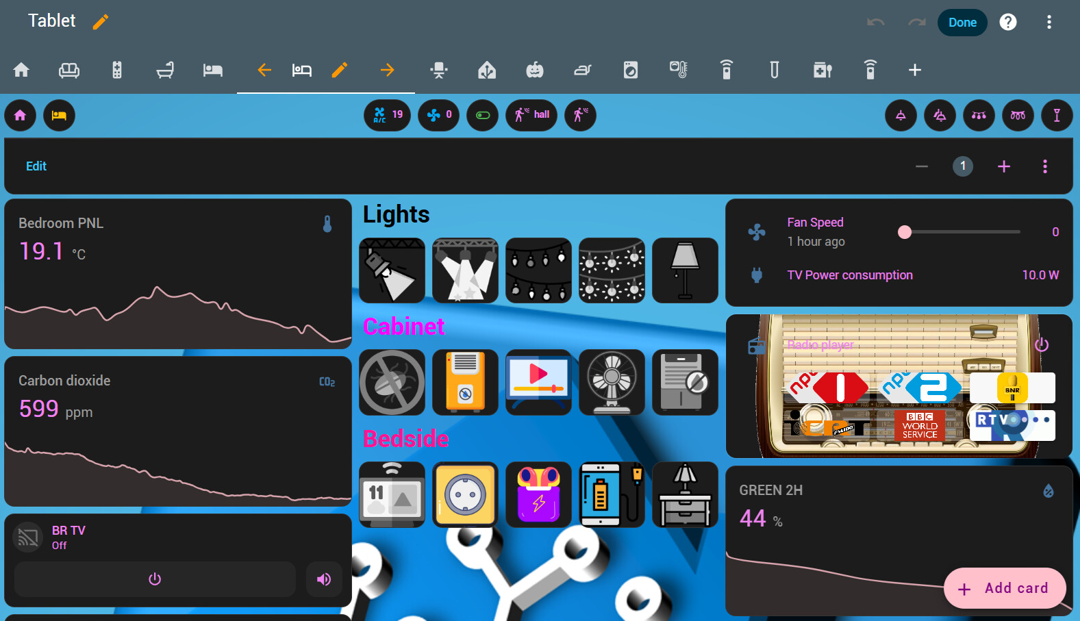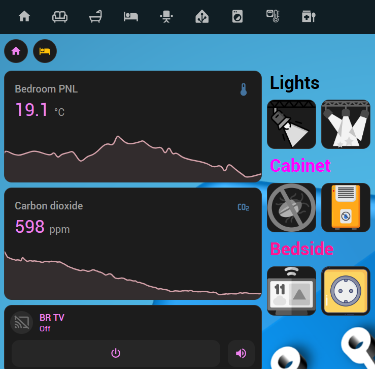 If I click on bedroom, the main view for bedroom opens.