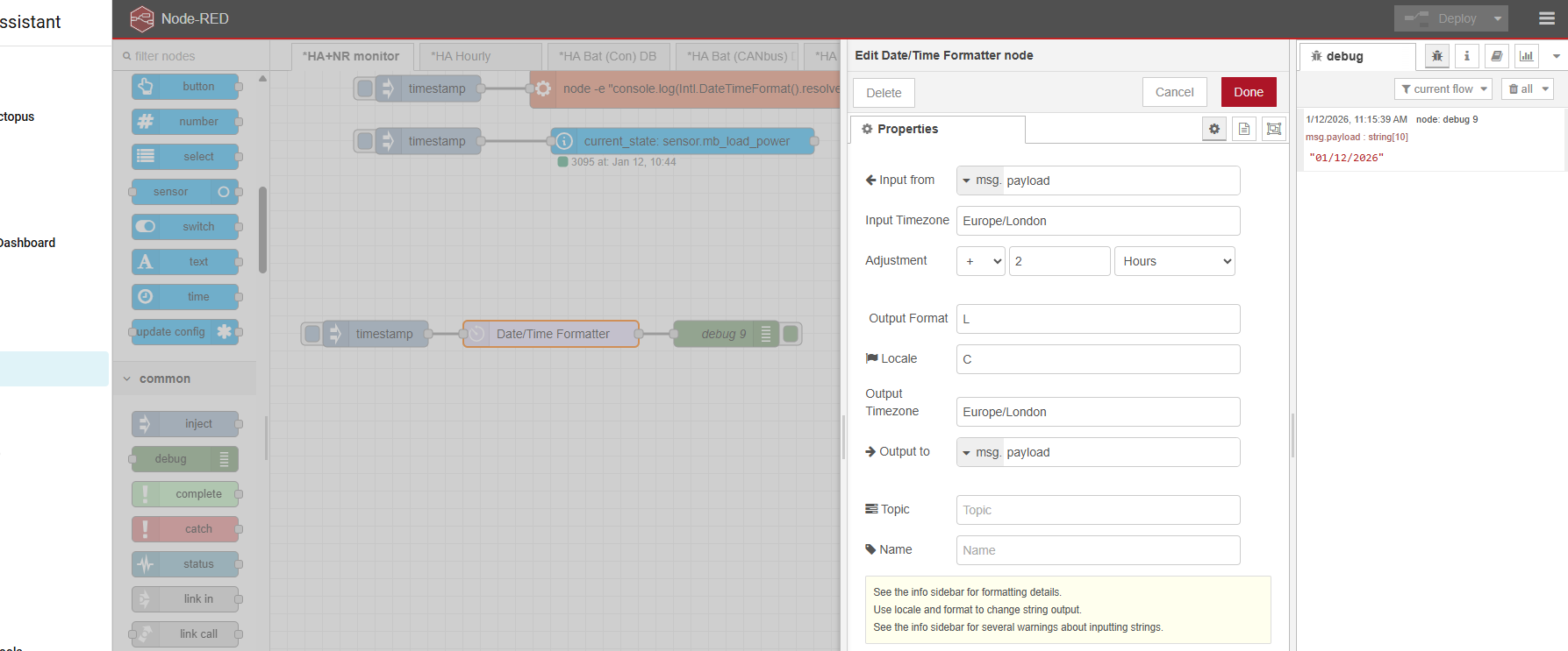 A quick test shows that, although Node-RED add-on knows my timezone, the system locale is still stuck as the default en-US, and I have to set the locale manually in the node to en-GB to get the UK format.