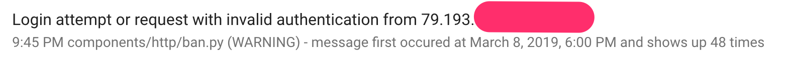 2019-03-09 13:00:36 WARNING (MainThread) [homeassistant.components.http.ban] Login attempt or request with invalid authentication from 192.168.x.xxx