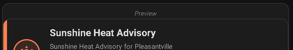 Regarding the _preview option: it only exists to allow you to set up the card if your entity has no active alerts. Along with entirely fake data, it includes a “Preview” header just to drive the point home.