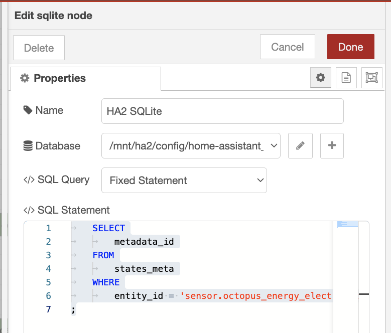 You will find the node settings I used in the code export in my earlier post. From memory, the node is very particular, and I think read only requires prepared statements, and even if you don’t use parameters in the statement, msg.payload input needs to be an empty object {}.