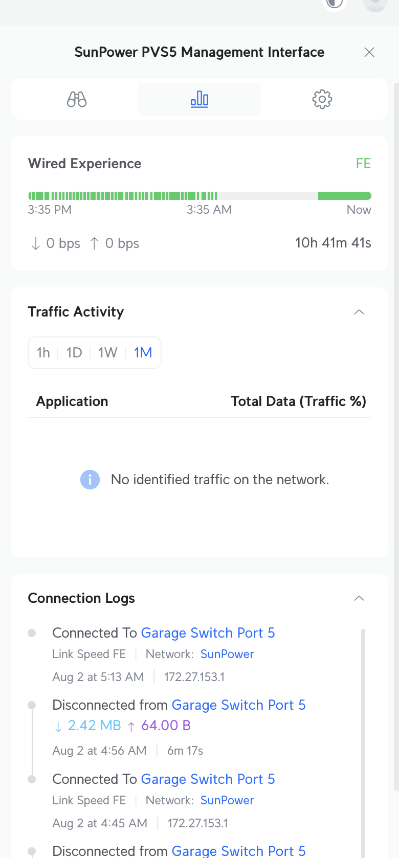 As mentioned above I’ve been working on a fork of the SunPower integration, so yesterday morning after the integration had been working mostly okay for 20+ hours it stopped polling data, when it’s supposed to. (I fixed the integration to optionally not poll at night since I don’t have batteries) despite notifications saying it was trying. I could also no longer ping the PVS LAN port from my home assistant. But I could poll PVS data and ping it from my Windows computer. Reloading the integration didn’t help, the only thing that helped get HA working and communicating with the PVS again was restarting Home Assistant. It’s almost like the route I’ve setup on it died, or HA’s network stack was acting flaky. I should have did more testing before restarting HA, but I had other things to do. So now I’m wondering why did HA stop being able to communicate with the PVS.