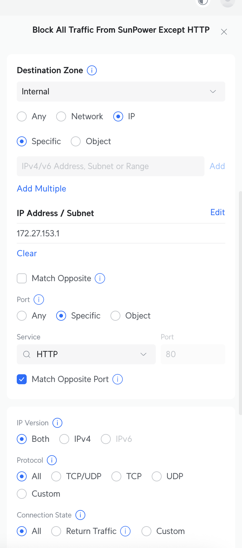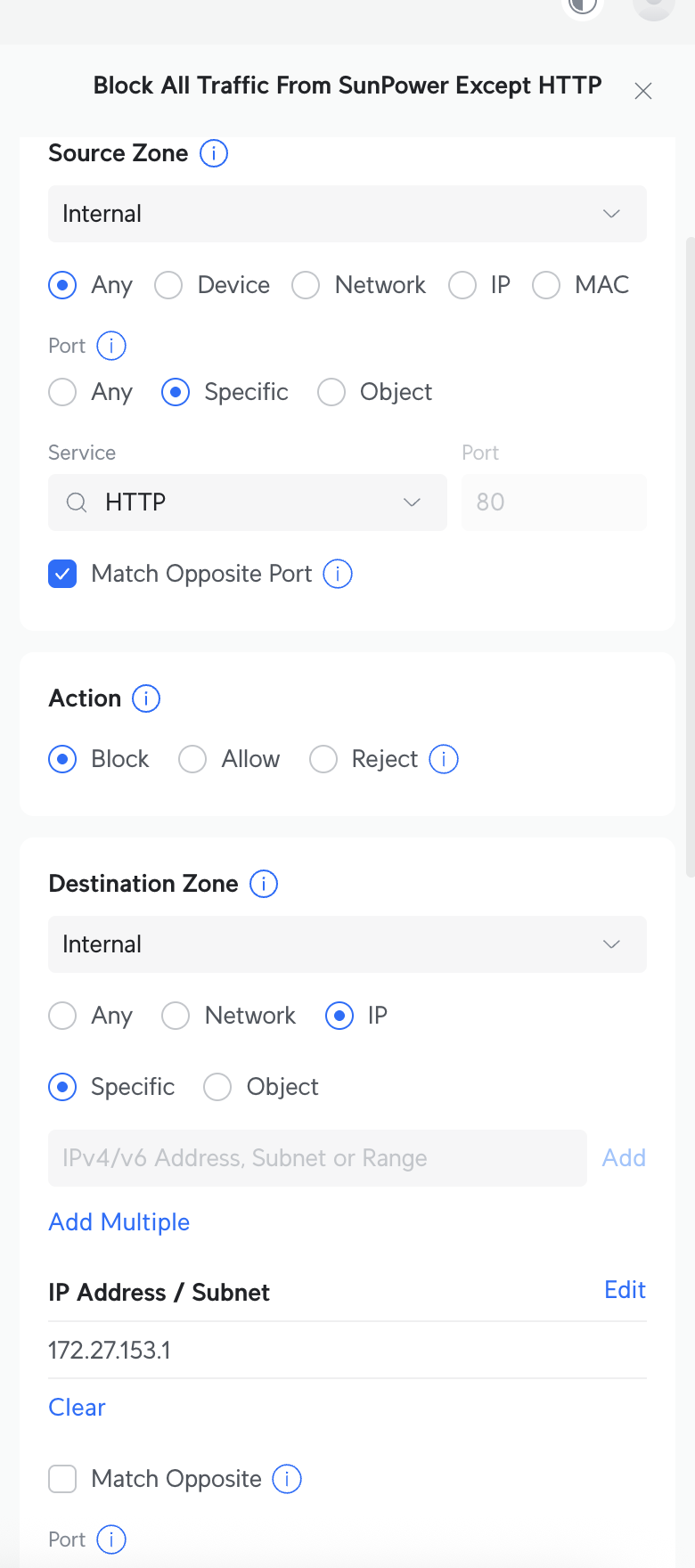 I’ll add that you need to make sure the new policy is at the top of your rules or it may not block anything. I have an extensive list of rules due to my IoT network so it took me some time to figure out why other traffic was making it through my port scan.