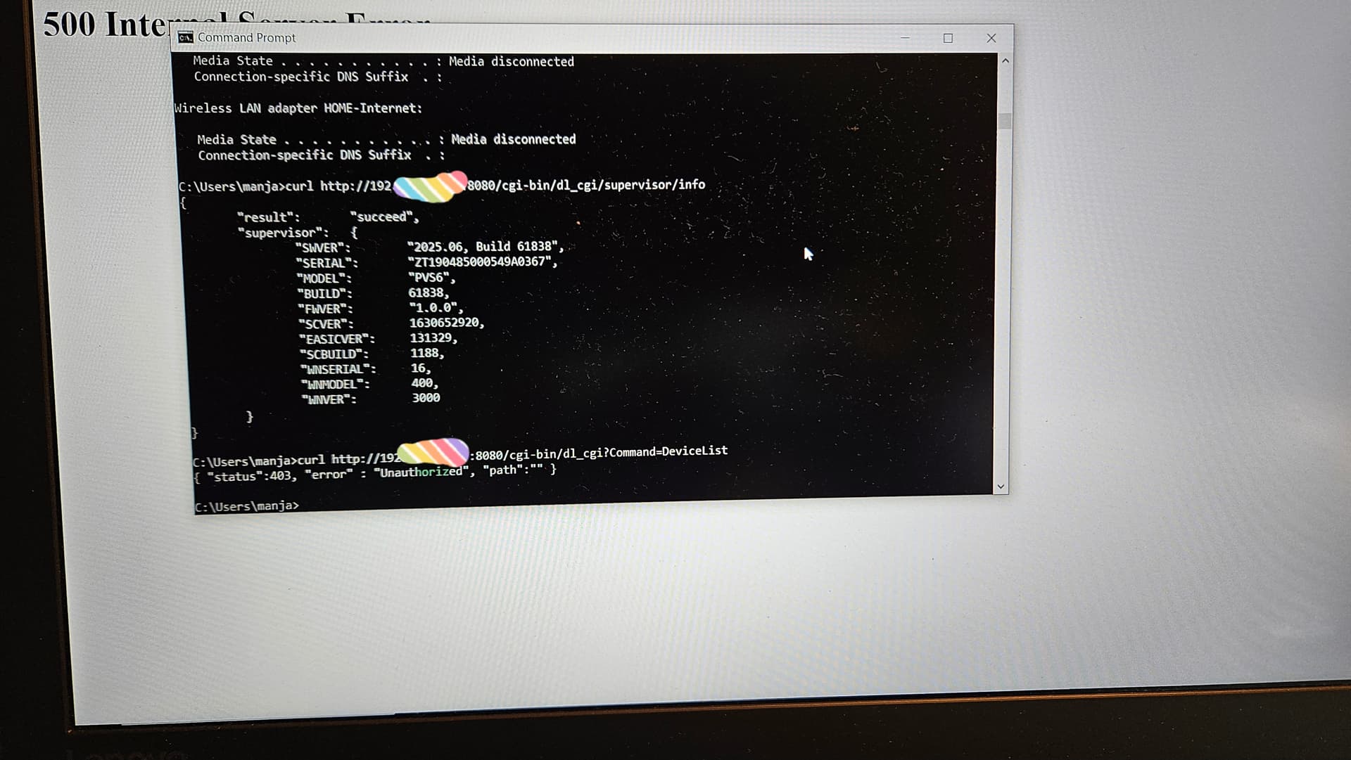 I was able to get this working but the device_list curl debug statement would only work once or twice and then the inverter state would change to error and the curl values would no longer update.