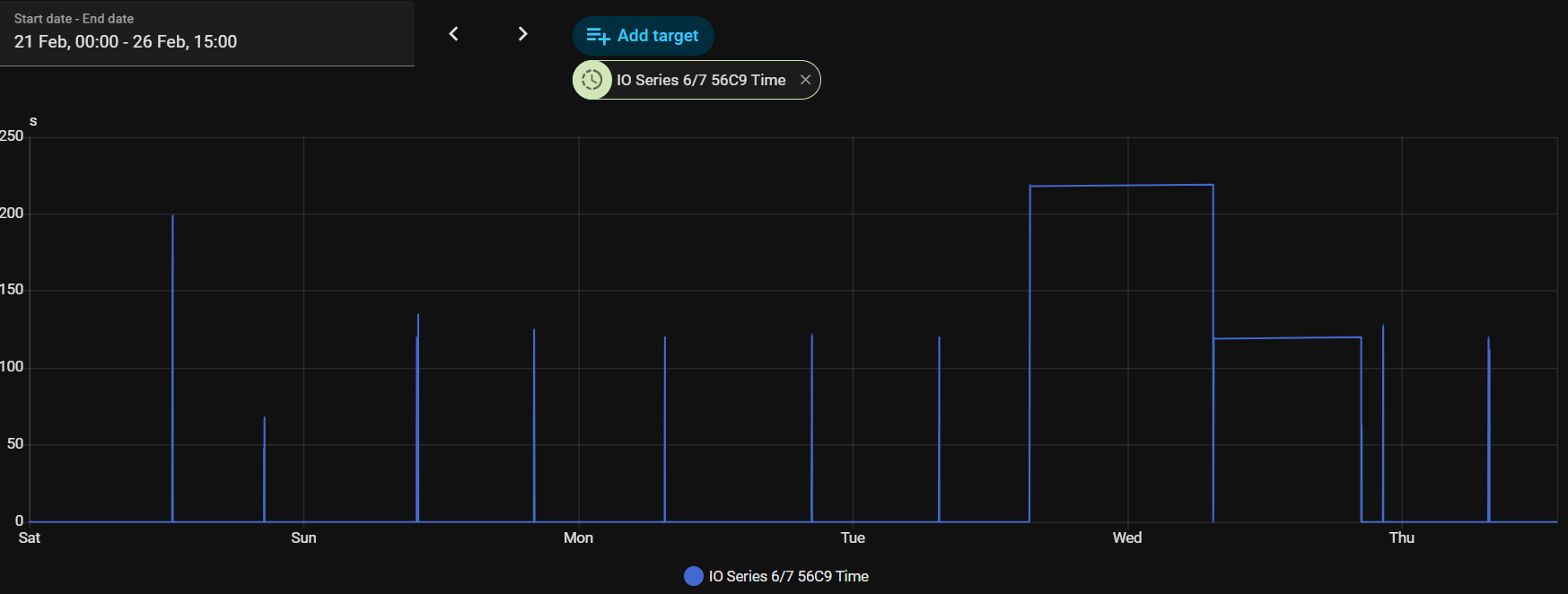 The time entity is as far as I understand it supposed to create these spikes. But sometimes the time stops counting but also does not reset to 0.